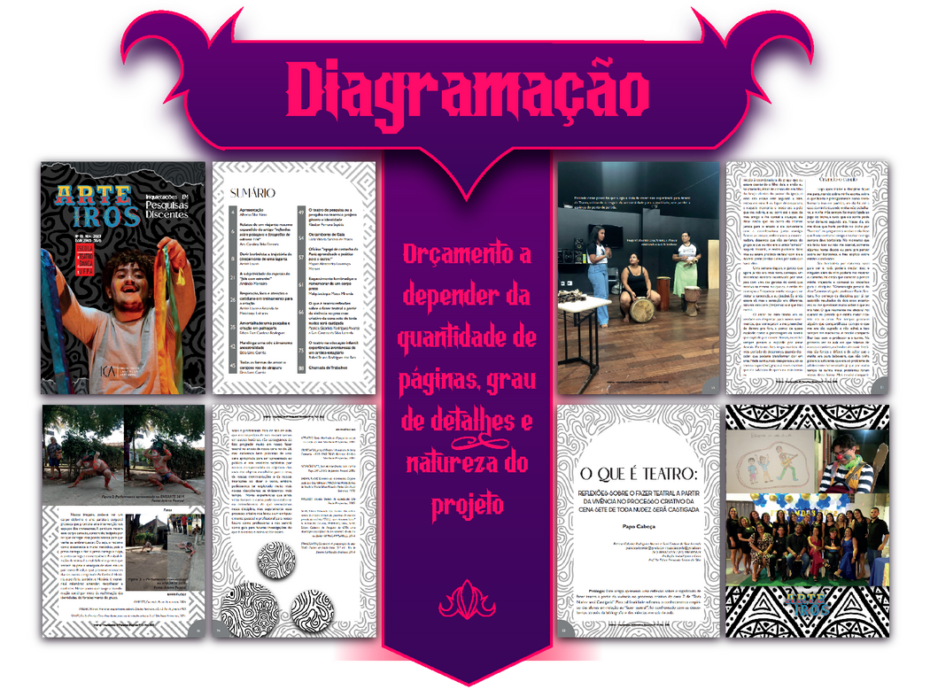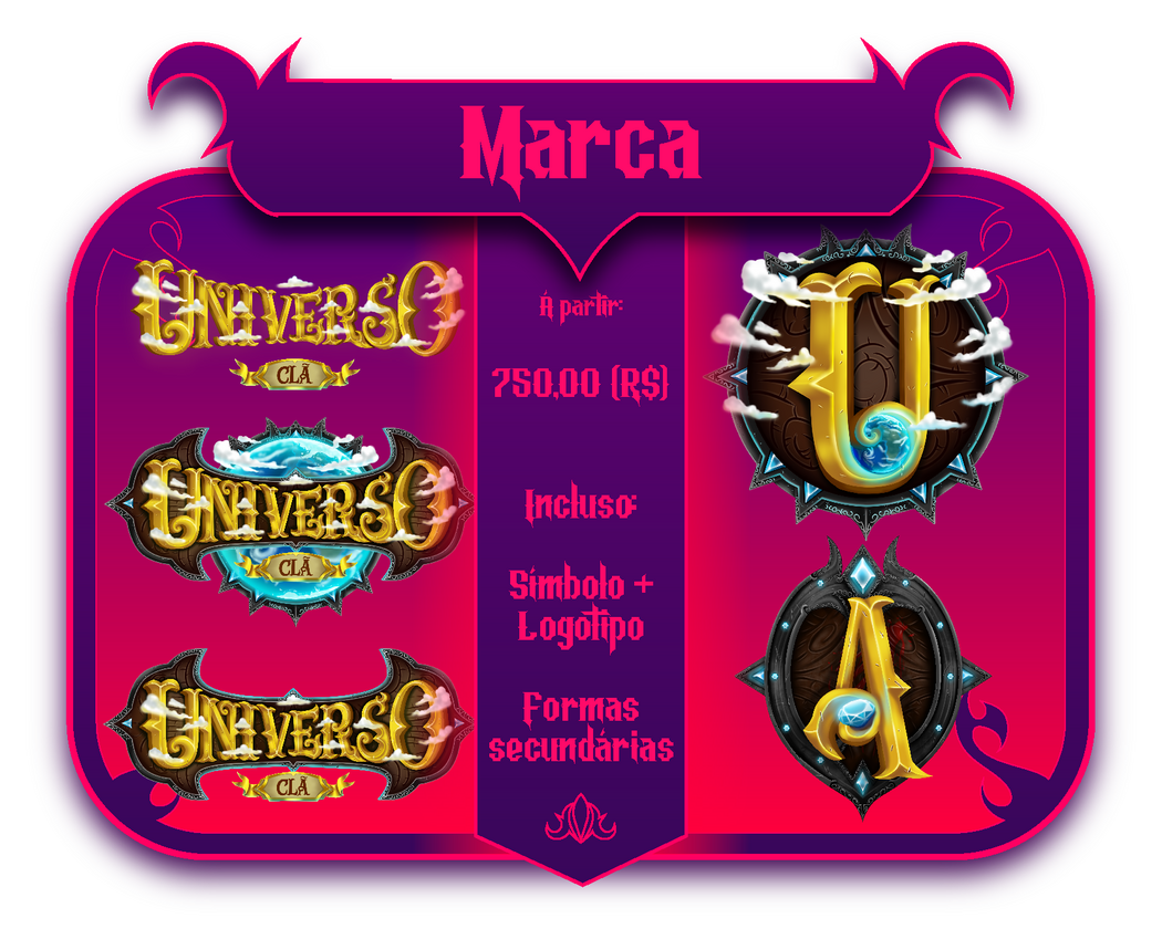 Importante salientar que os preços descritos neste catálogo podem variar dependendo do grau de detalhes da arte. Os preços descritos são os mínimos a serem cobrados pelas artes e podem aumentar de acordo com a natureza do projeto e poder aquisitivo da entidade contratante.Pagamento: